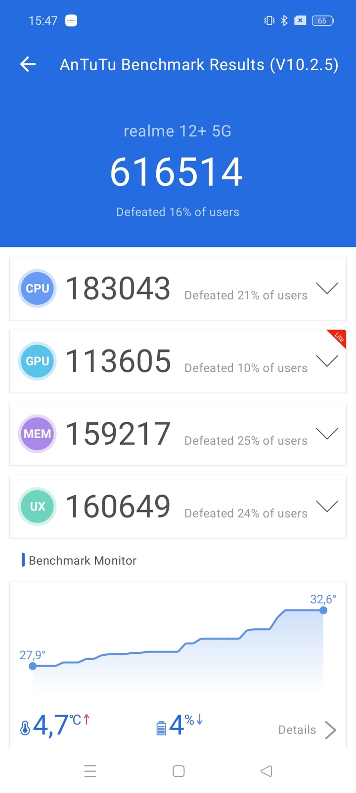 - Antutu Benchmark 10.2.1 – 616 514 pkt