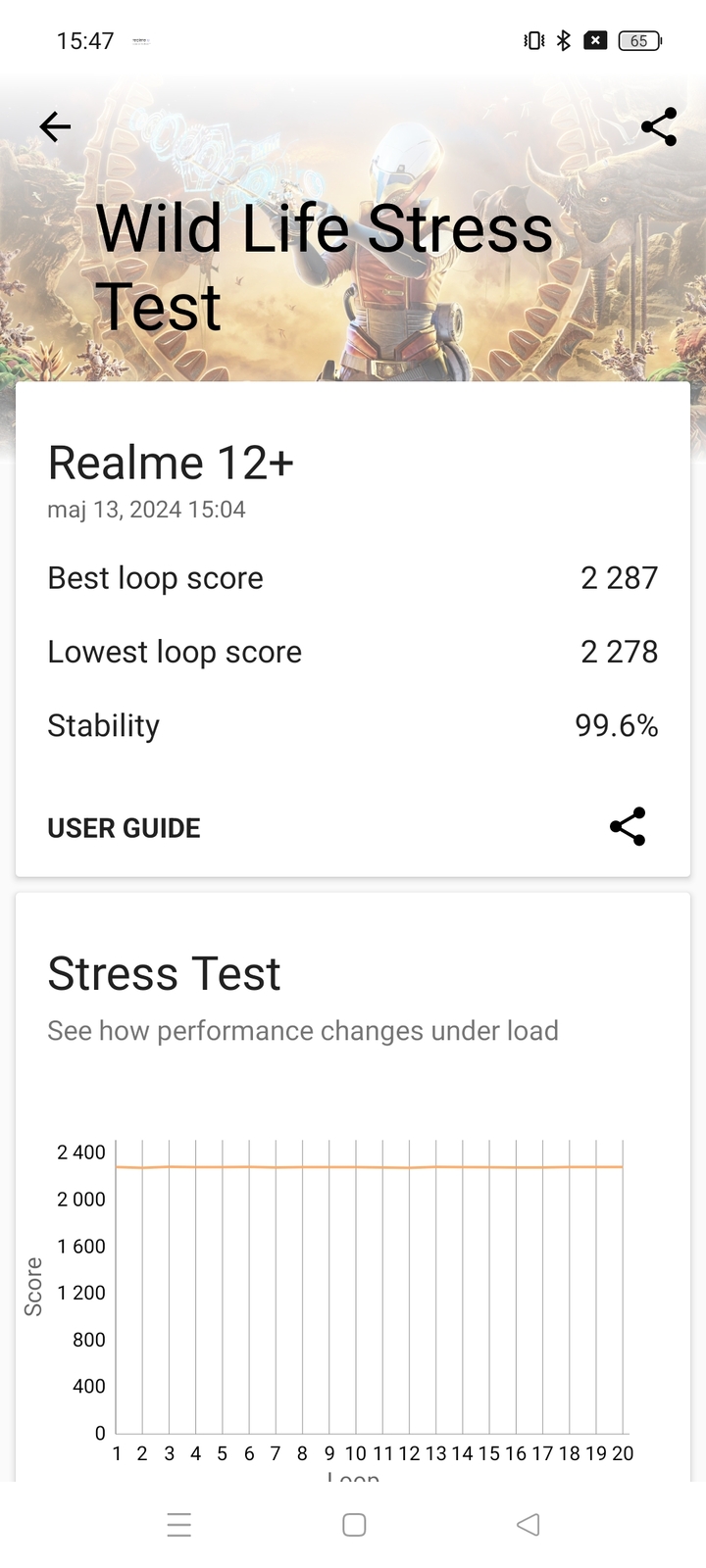 Smartfon działa bardzo płynnie i stabilnie, nie ma również żadnego problemu z grami ze sklepu Google Play. Co więcej, nie nagrzewa się zbytnio nawet podczas długiego grania i nie odczuwa się spadków wydajności. Potwierdzają to zresztą wyniki w stress testach na poziomie 99,6 %. Na pewno po części jest to zasługa układu chłodzenia z komorą parową ze stali nierdzewnej.