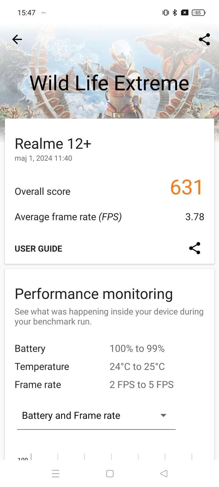 - 3D Mark (test Wild Life Extreme) – 631 pkt