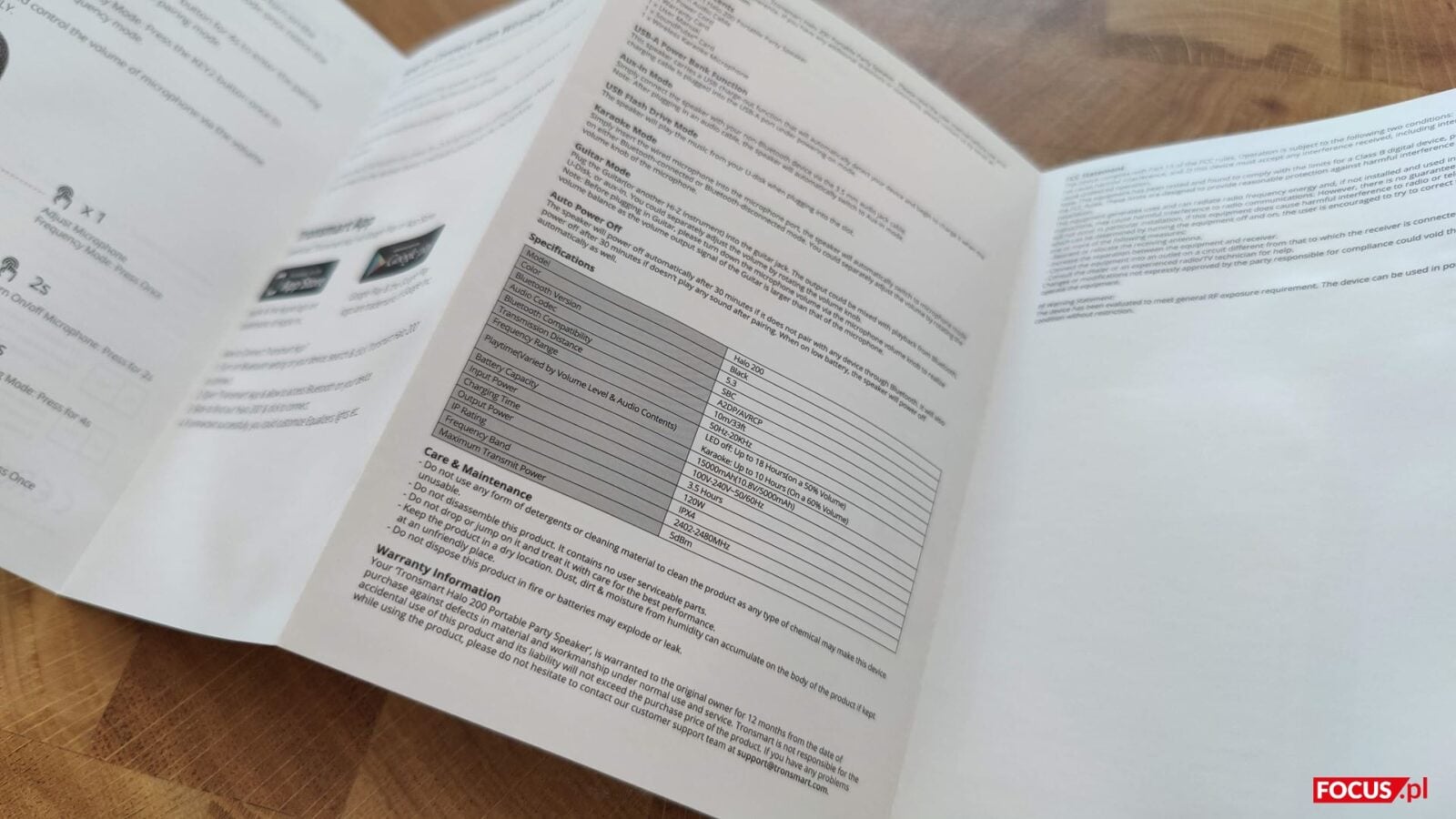 Halo 200 jest dostępny w trzech wariantach, bo bez mikrofonów, z jednym mikrofonem lub dwoma mikrofonami. Bez względu na wybór, w zestawie znajdziecie przewód ładujący, przewód jack 3,5 mm, instrukcję obsługi, kartę informacyjną o opatentowanym equalizerze SoundPulse oraz kartę gwarancyjną. W praktyce głośnik może jednocześnie łączyć się z dwoma urządzeniami przez Bluetooth, a także odtwarzać muzykę przez przewód jack i USB lub kartę pamięci.
