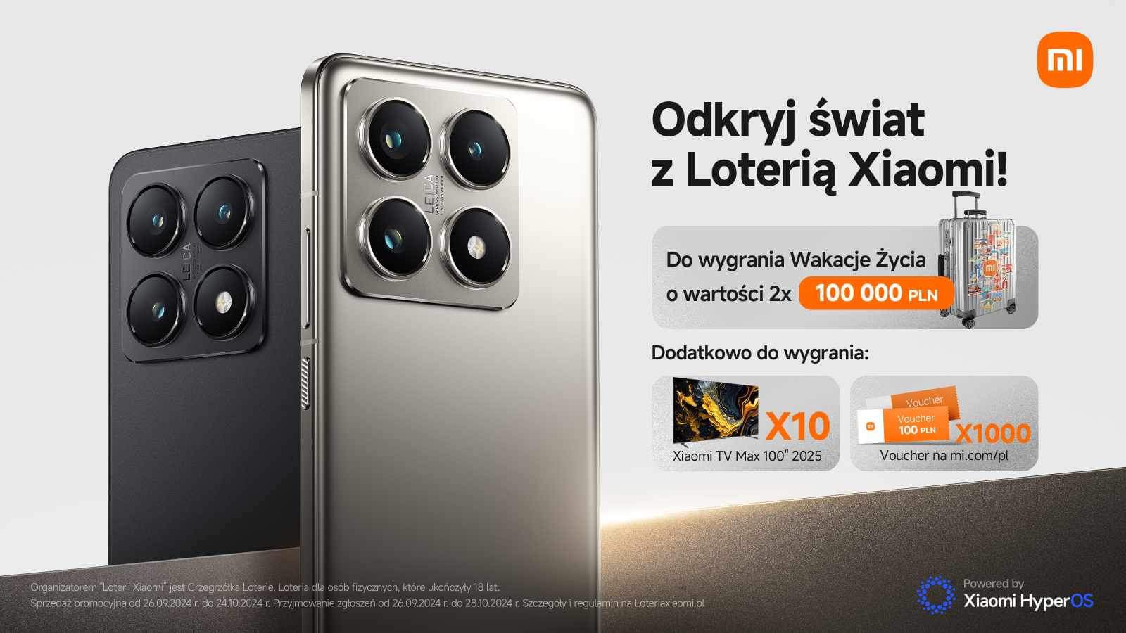 Przy zakupie Xiaomi 14T możemy również liczyć na 600 zł zwrotu, a przy 14T Pro — 800 zł. Dodatkowo, kupując smartfon, bierzemy udział w loterii Xiaomi, w której do wygrania są dwa bony na 100 tysięcy złotych na wakacje, 10 telewizorów Xiaomi TV 100” 2025 czy tysiąc voucherów o wartości 100 zł na mi.com.