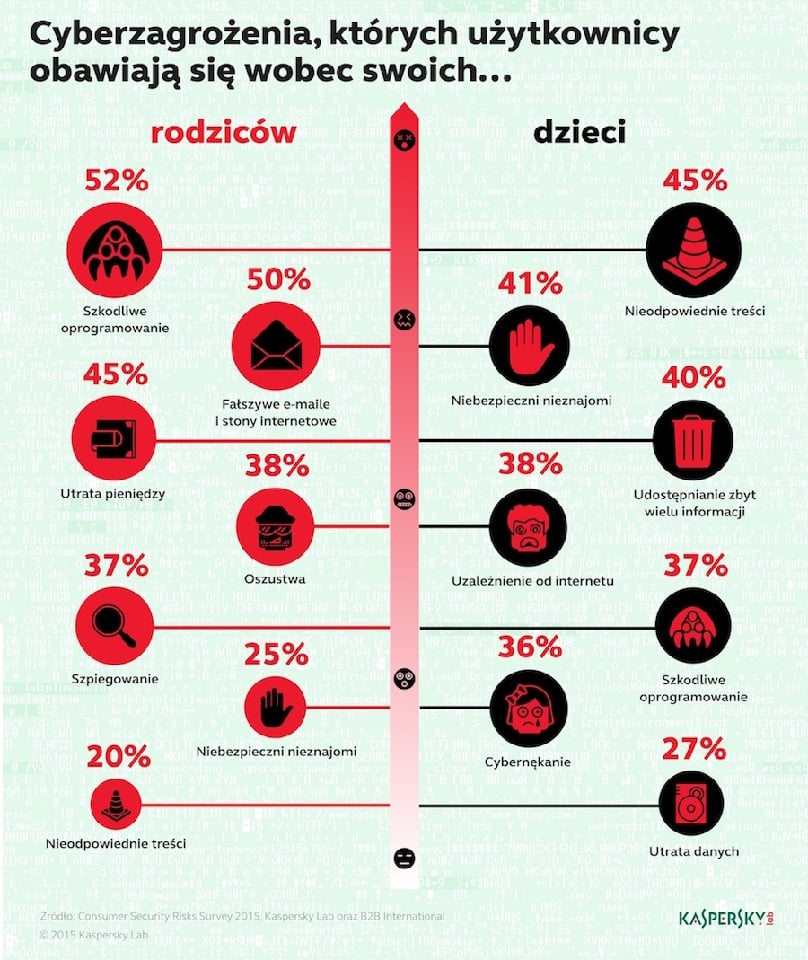 Nowe badanie przeprowadzone przez Kaspersky Lab i B2B International ujawniło, że 30% rodziców nie ma kontroli nad tym, co ich dzieci widzą lub co robią online, podczas gdy 38% martwi się problemem uzależnienia od internetu. Ponadto wielu użytkowników niepokoi się, że podobne zagrożenie dotyczy ich własnych rodziców i dziadków, którzy aktywnie korzystają z technologii cyfrowych.