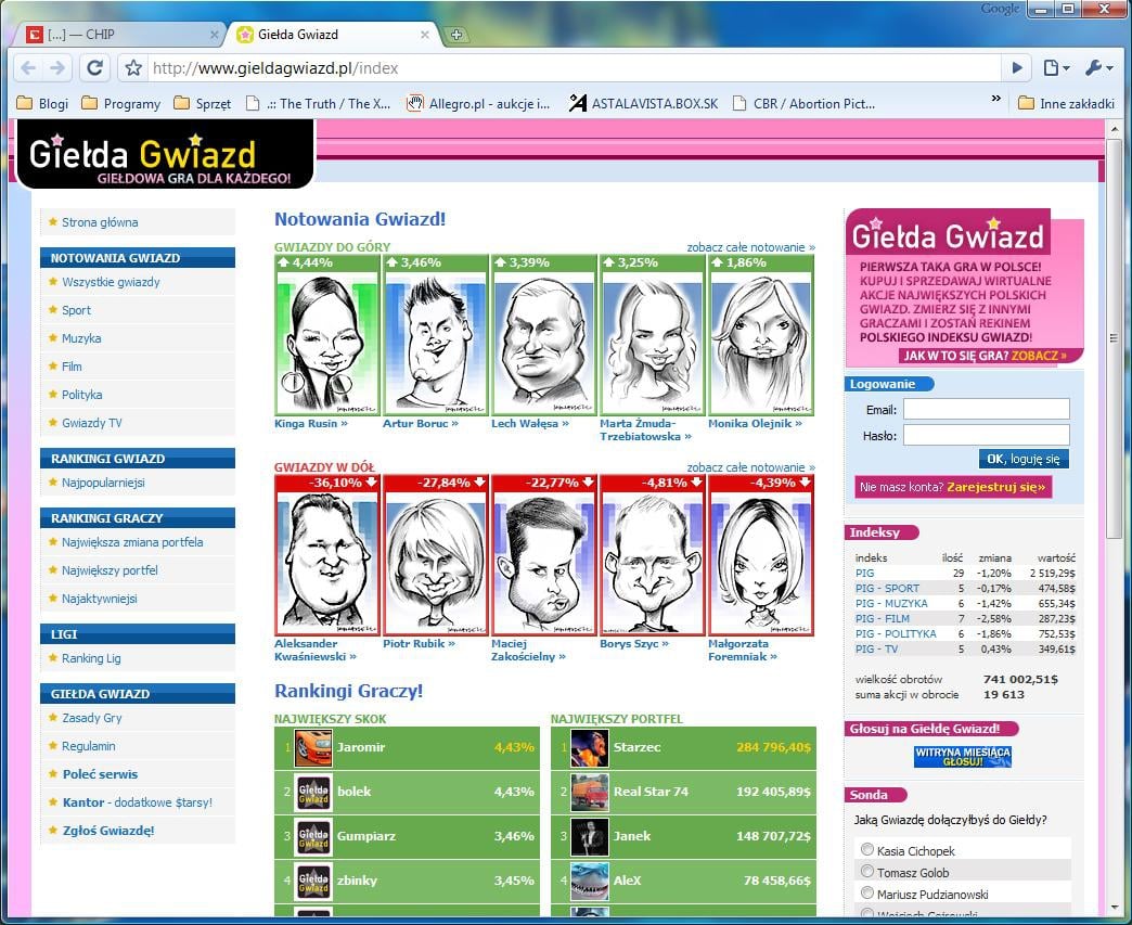 Serwis “Giełda Gwiazd” jest całkowicie nową formą interaktywnej zabawy, łączącej w sobie mechanizmy giełdowego obrotu akcjami z szeroko rozumianym rynkiem “celebrities”.